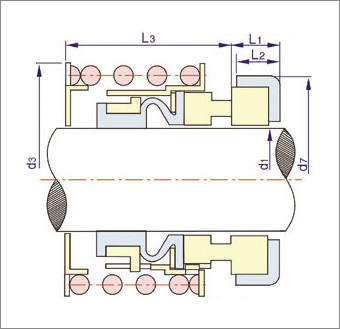 FBD些列機械密封由于采用單彈簧不易堵塞,提高了旋轉環的浮動性從而減少了補償阻力,適用于油、水及其它弱腐蝕性介質中。